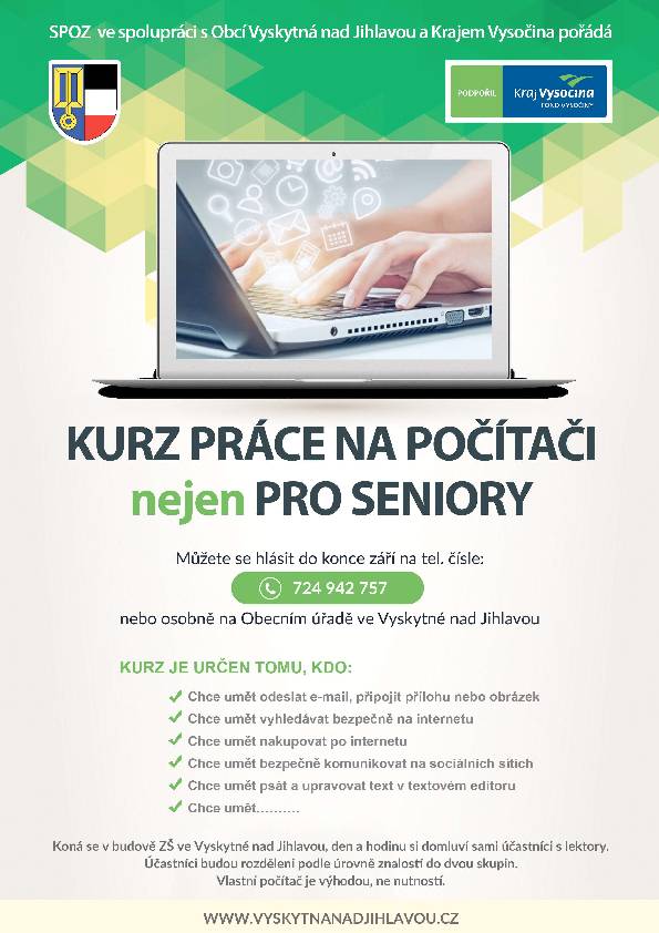 Kurz bude probíhat v učebně ZŠ ve Vyskytné nad Jihlavou.